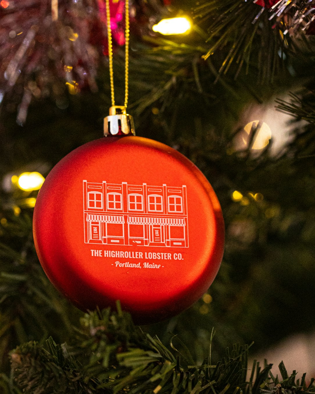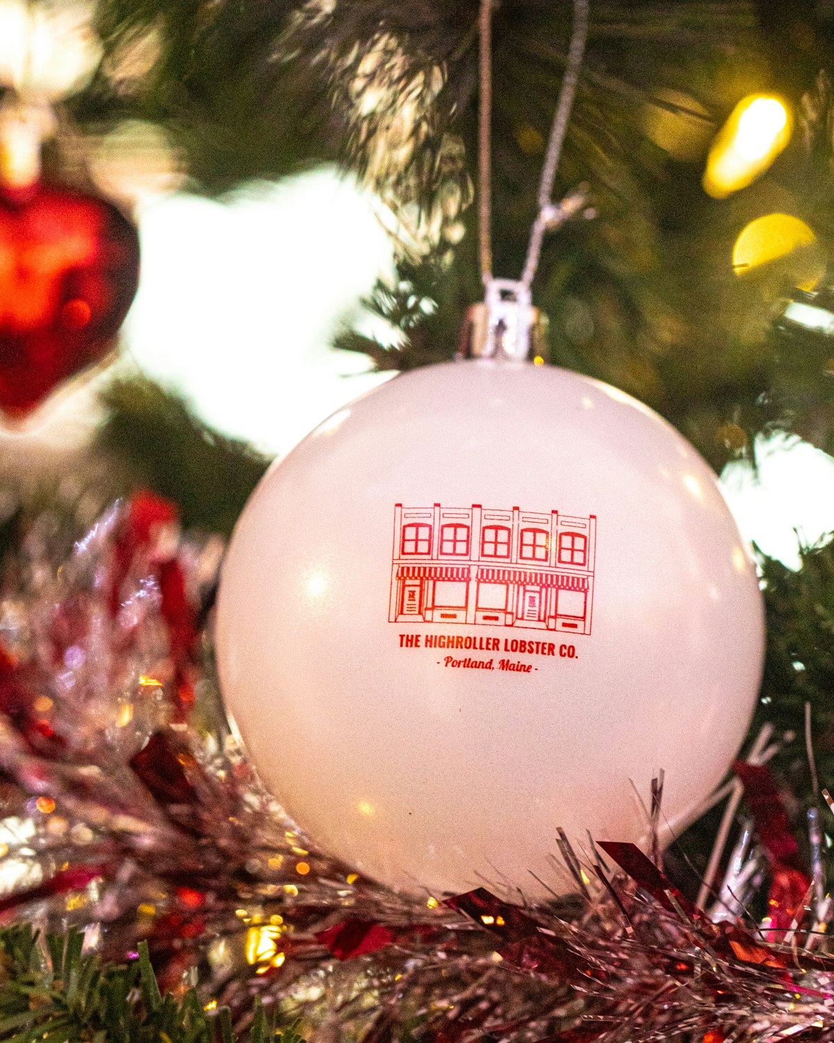 – 1 holiday ornament (choice of red flat [pictured] or white sphere)